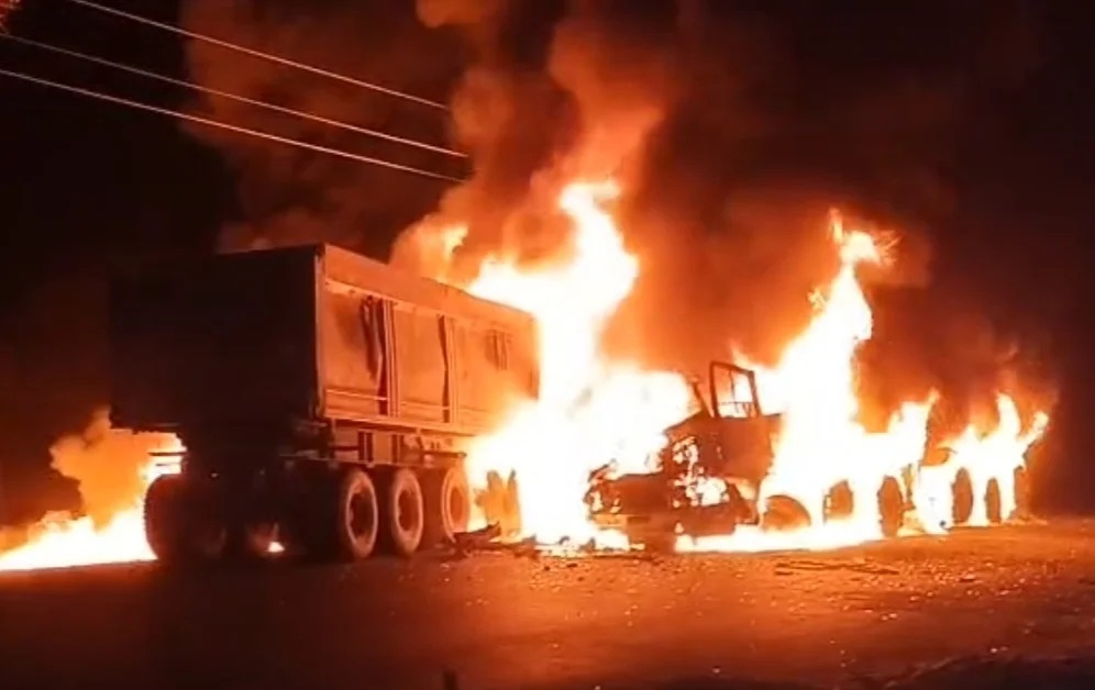 मुख्य मार्ग पर ट्रेलर हादसा : तीन वाहन टकराए, भीषण आग में 1 की मौत, 1 गंभीर