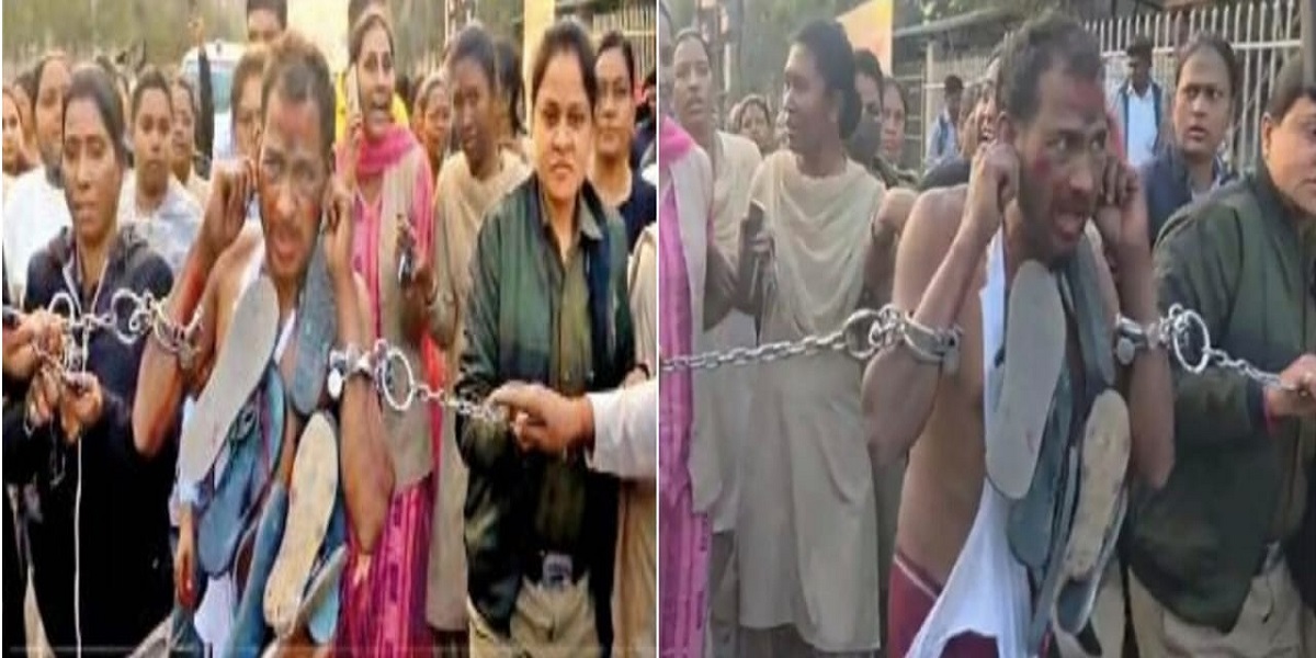 Raigarh Violence Update : महिला पुलिसकर्मी के साथ बदसलूकी करने वाले आरोपी को चप्पलों की माला पहनाकर कराई गई परेड
