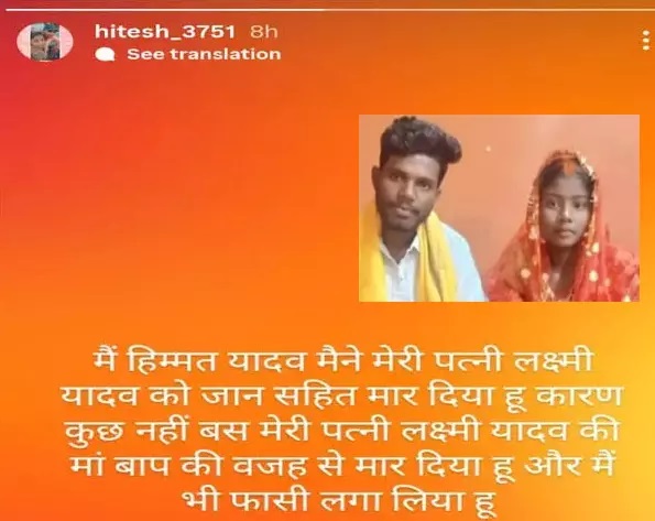 सोशल मीडिया पर मौत से पहले का कबूलनामा : पति ने लिखा "लक्ष्मी को मार दिया", फिर खुद कर ली आत्महत्या