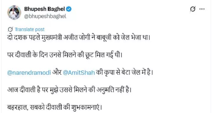 CG News : दिवाली पर चैतन्य बघेल से मुलाकात पर रोक, भूपेश बघेल को नहीं मिली प्रशासन से अनुमति