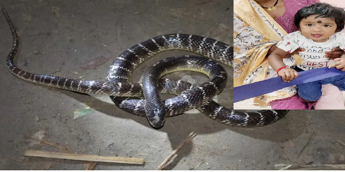 CG : करैत को खिलौना समझ 9 माह की मासूम ने काटा, सांप की मौत – बच्ची सुरक्षित