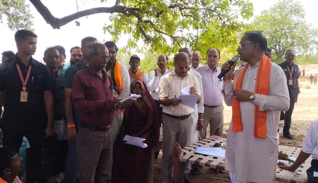 सीएम साय ने गांव के बीच महुआ के पेड़ के नीचे चौपाल लगाई और भारत माता और छत्तीसगढ़ महतारी के जयकारों से शुरुआत की। उन्होंने सरपंच को पास बैठाकर गांव में चल रहे विकास कार्यों और योजनाओं की जमीनी हकीकत जानी। आस-पास के कोलियारी, कुवांरपुर समेत दर्जनों गांवों के लोग बड़ी संख्या में अपनी समस्याएं लेकर पहुंचे।